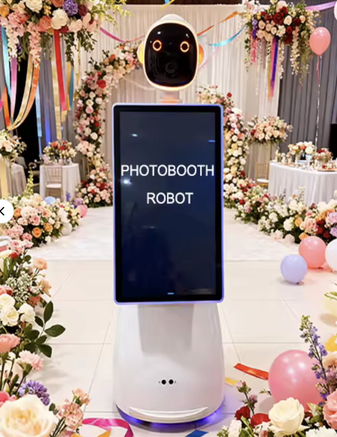 Notre Photomaton Robot Dispose D’Un Grand Écran Tactile De 24 Pouces Qui Peut Afficher Des Options Personnalisées À L’Écran, Des Vidéos De Marque, Des Logos D’Entreprise. Dimensions 32′′